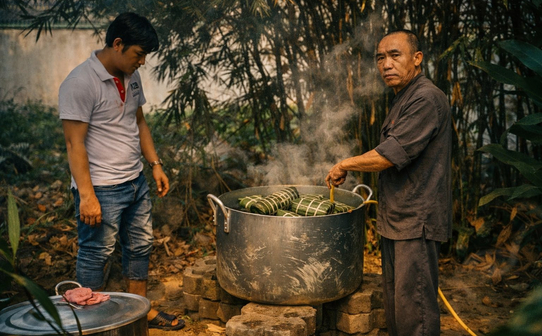 The glowing fire throughout the night not only cooks the banh chung, but also warms the year-end stories, the joyful laughter, and the bonds forged after a long journey of hard work.