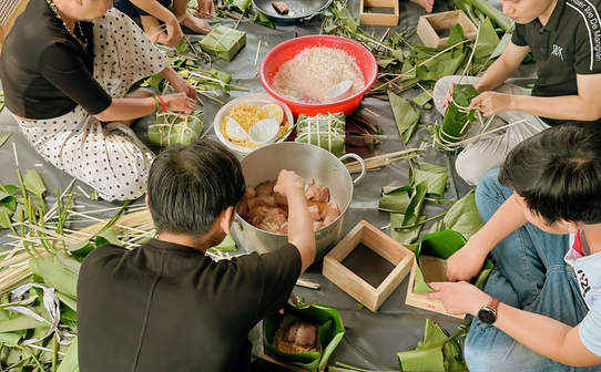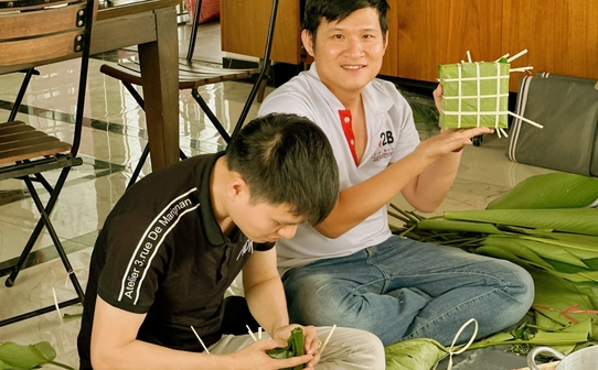 From hands accustomed to architectural shapes and lines, today they meticulously arrange leaves, measure rice, and carefully wrap each square cake. Each cake is not only a taste of Tet (Vietnamese New Year), but also represents meticulousness and teamwork – qualities that A2B Vietnam always cherishes in every project and in its corporate culture.