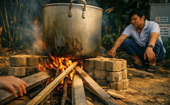 Bếp lửa đỏ hồng suốt đêm không chỉ nấu chín bánh chưng, mà còn sưởi ấm những câu chuyện cuối năm, những tiếng cười rộn ràng và sự gắn kết sau một hành trình dài nỗ lực.